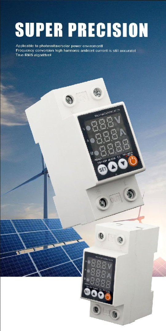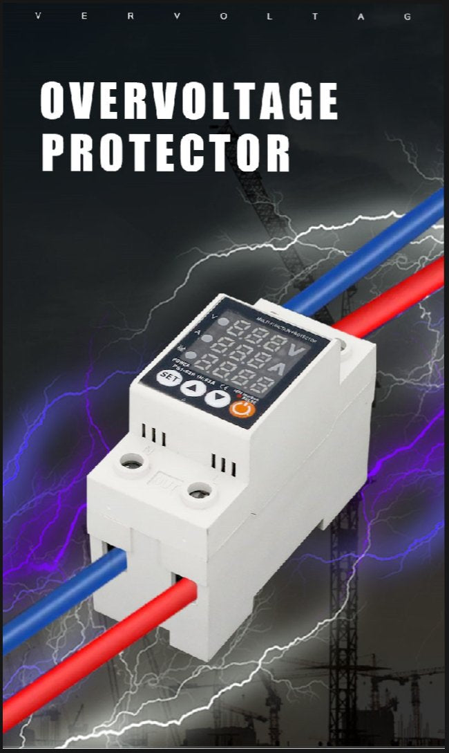 This 2-in-1 Voltage Protector provides real-time monitoring of Voltage (V) and Current (A) with automatic cut-off protection against over-voltage and under-voltage. Ideal for home appliances, industrial panels, and solar setups.